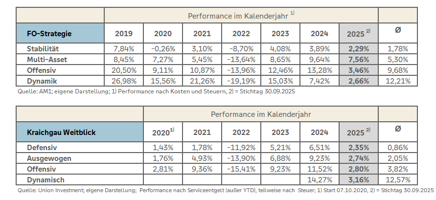 Unsere Anlageergebnisse zum 30.09.2025