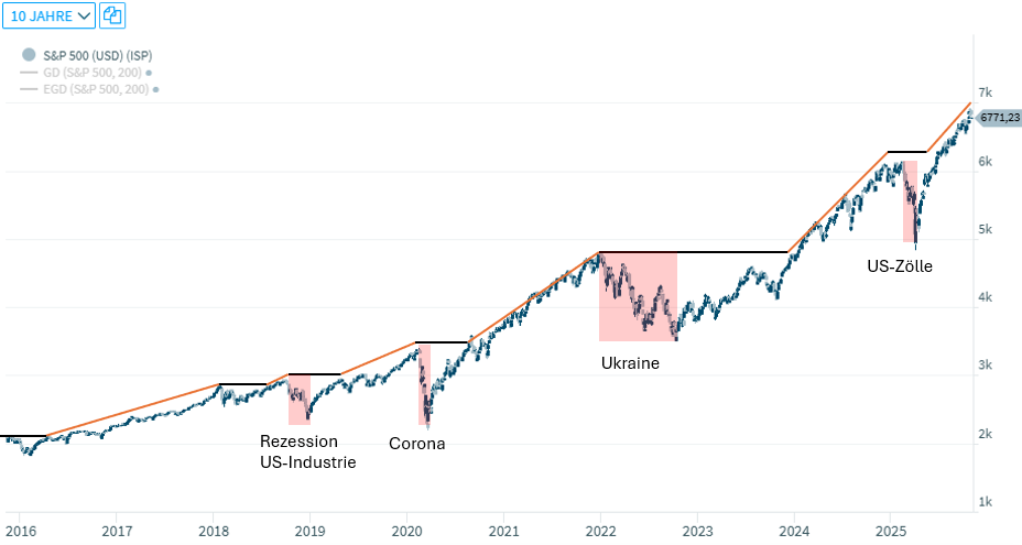Der 10-Jahres-Chart des S&P500 wurde von uns wie folgt ergänzt: